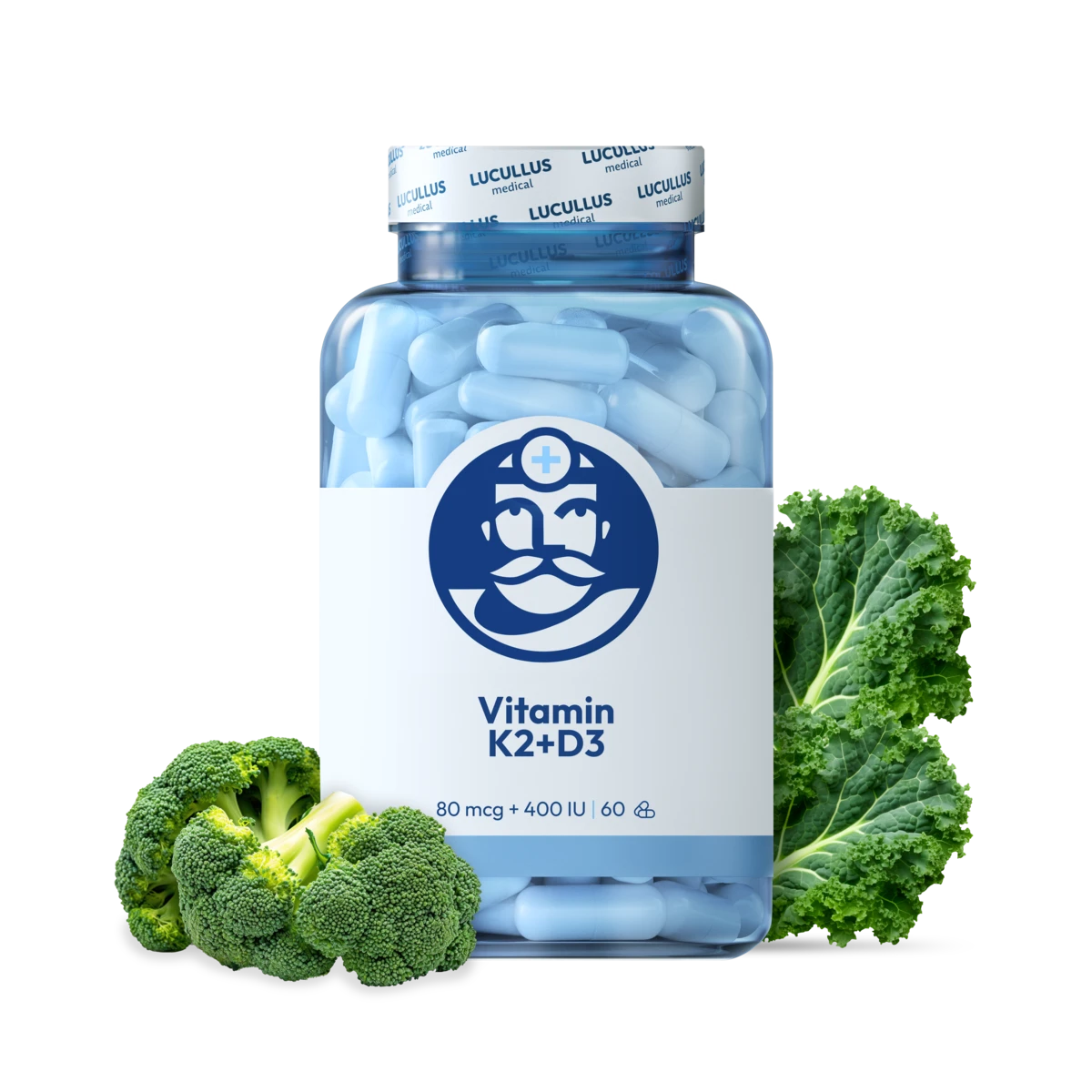Zutaten: Vitamin K2 (MK7 - Menachinon), Vitamin D3 (Cholecalciferol), Füllstoff: mikrokristalline Cellulose, Kapsel aus Gelatine.